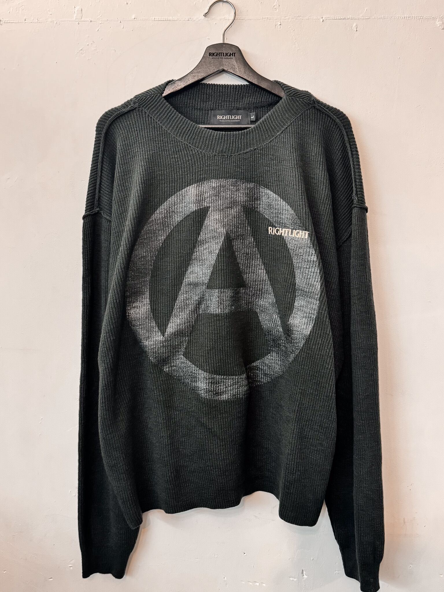 クリアラバープリントのサークルAに、RIGHTLIGHT刺繍をミックスしたデザイン。